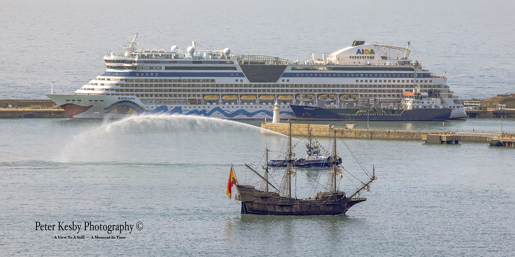 Andalucia at The Port Of Dover together with tug DHB Doughty and cruise liner Aida Bella.